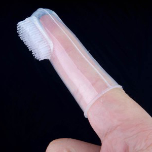Es bueno comenzar la limpieza de las encías desde el nacimiento, una vez al día, mejor a la hora del baño, con una gasa húmeda o un dedal de silicona, formando parte de su higiene diaria.