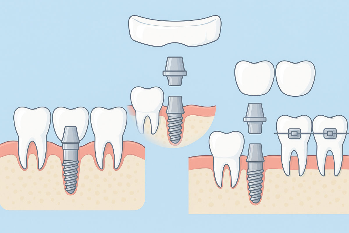 Alternativas: prótesis removible, puente fijo (talla de dientes vecinos) o implante unitario con su corona (opción fija y conservadora).