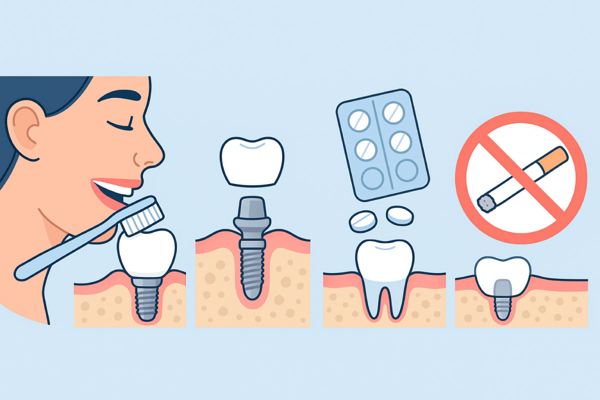 Evitar infecciones con higiene guiada, no cargar los implantes durante la osteointegración y seguir la medicación y pautas del cirujano. El tabaco eleva el riesgo de complicaciones y fracaso.